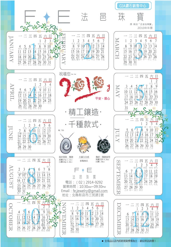 法邑珠寶2010年年曆 祝大家2010年行大運 法邑珠寶 服務電話:(02)